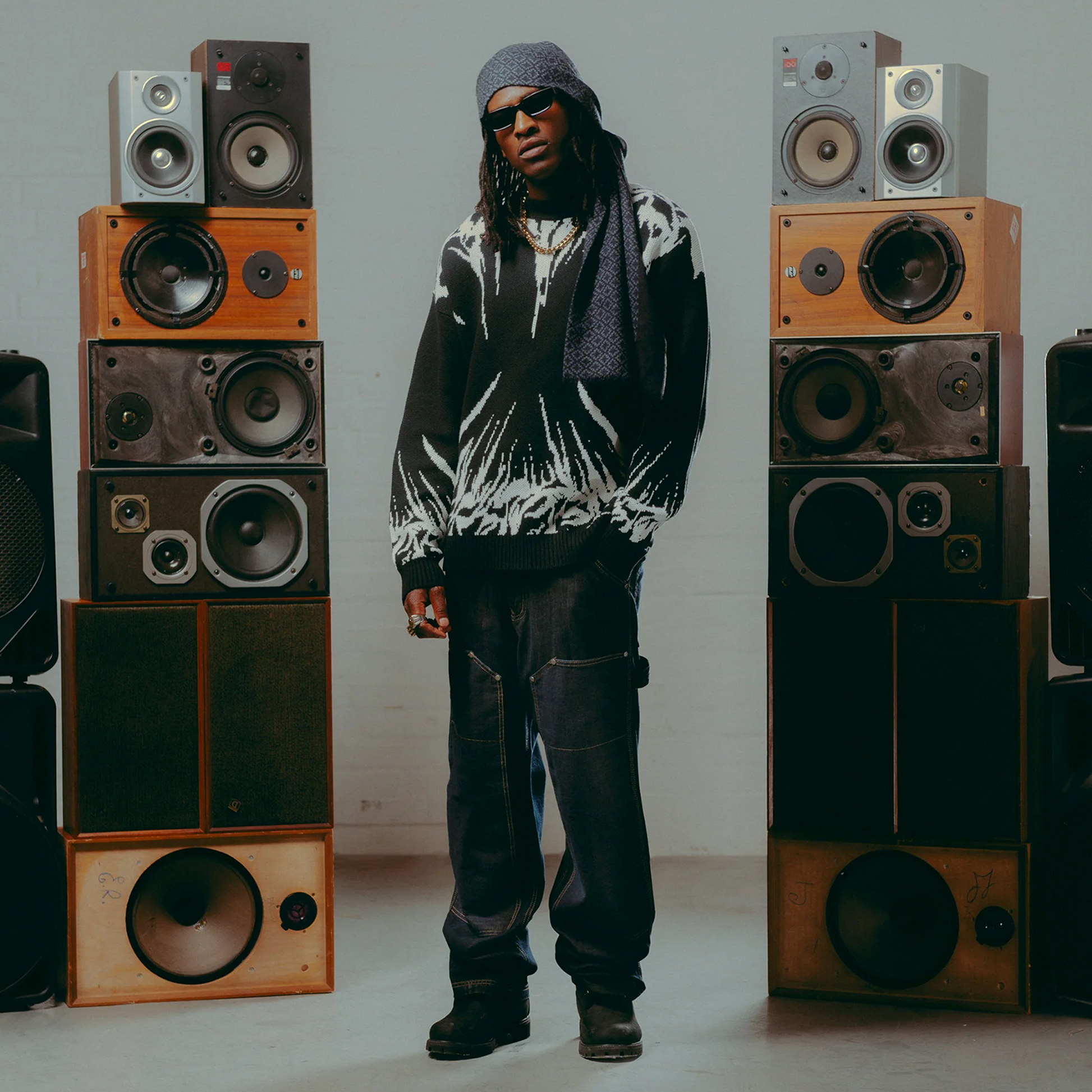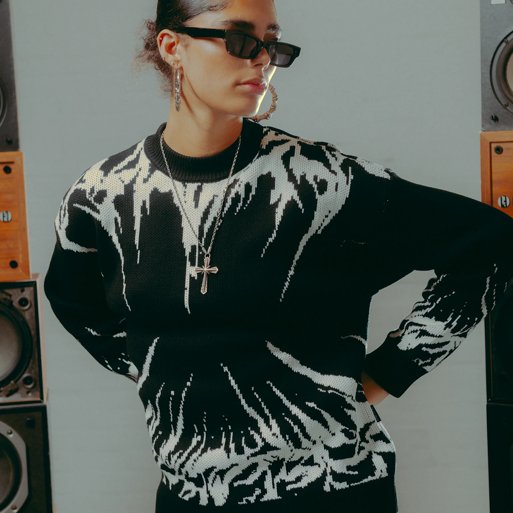 Oversized chunky jacquard jumper with Restless Energy monochrome Jacquard