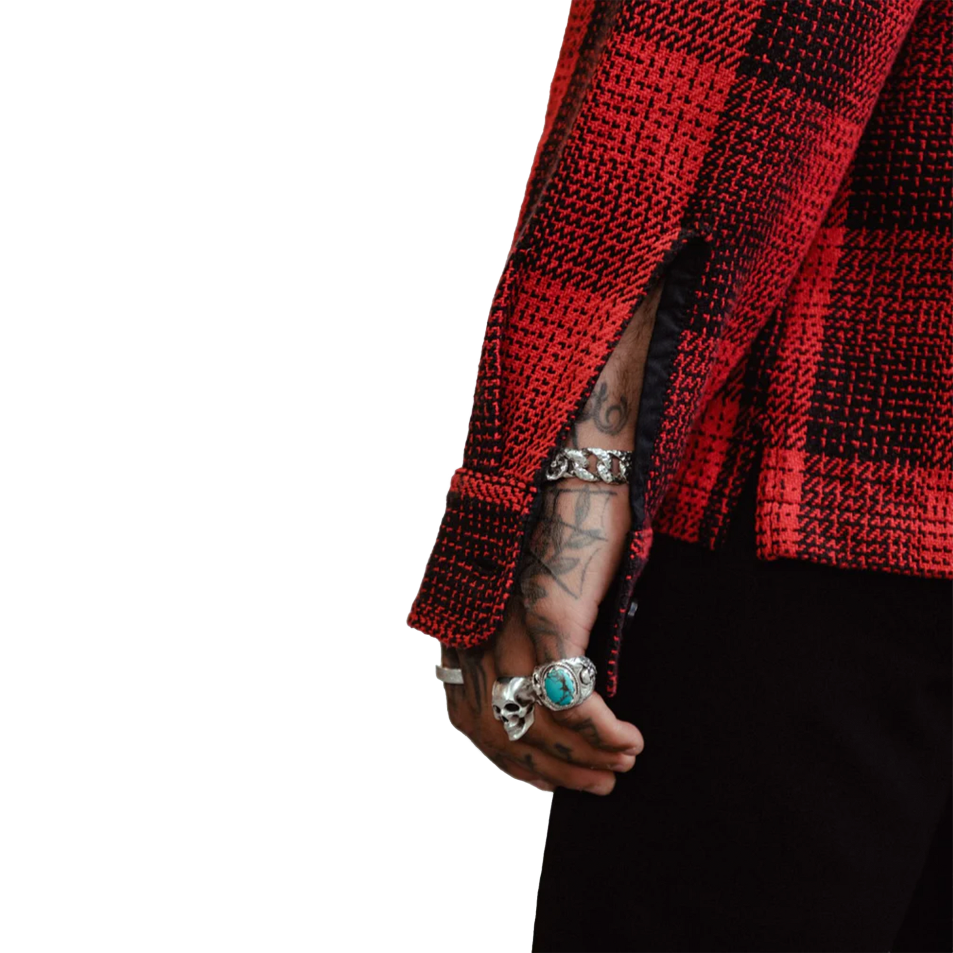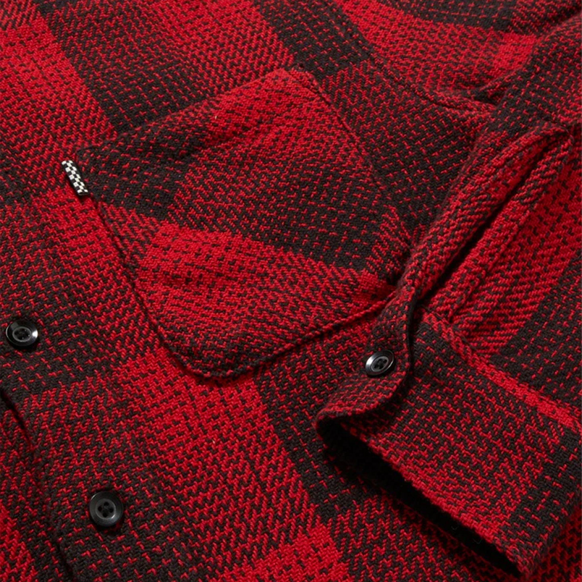 - Red and black plaid overshirt in heavy woven cotton