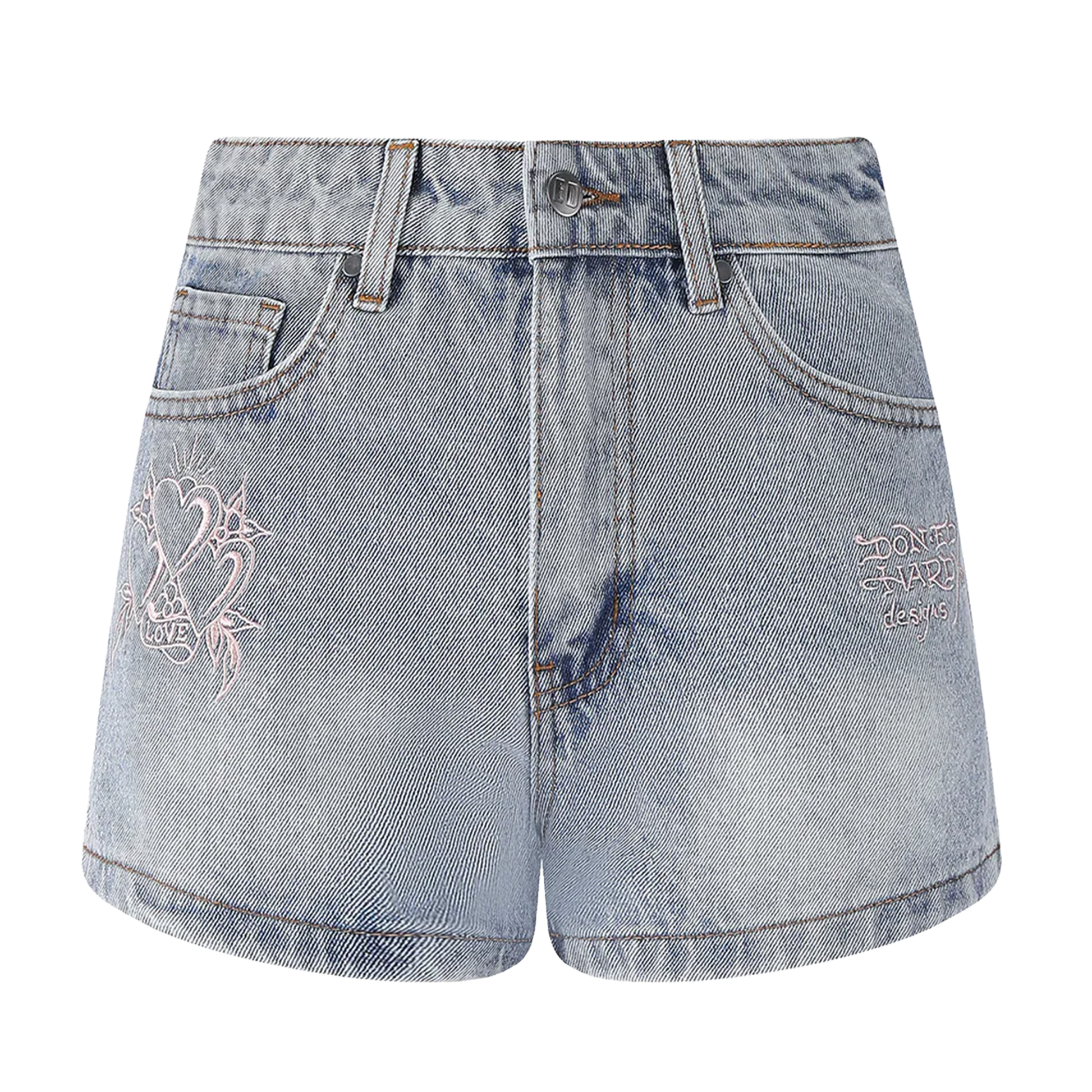 ED HARDY Womens Triple Heart Denim Jorts Shorts