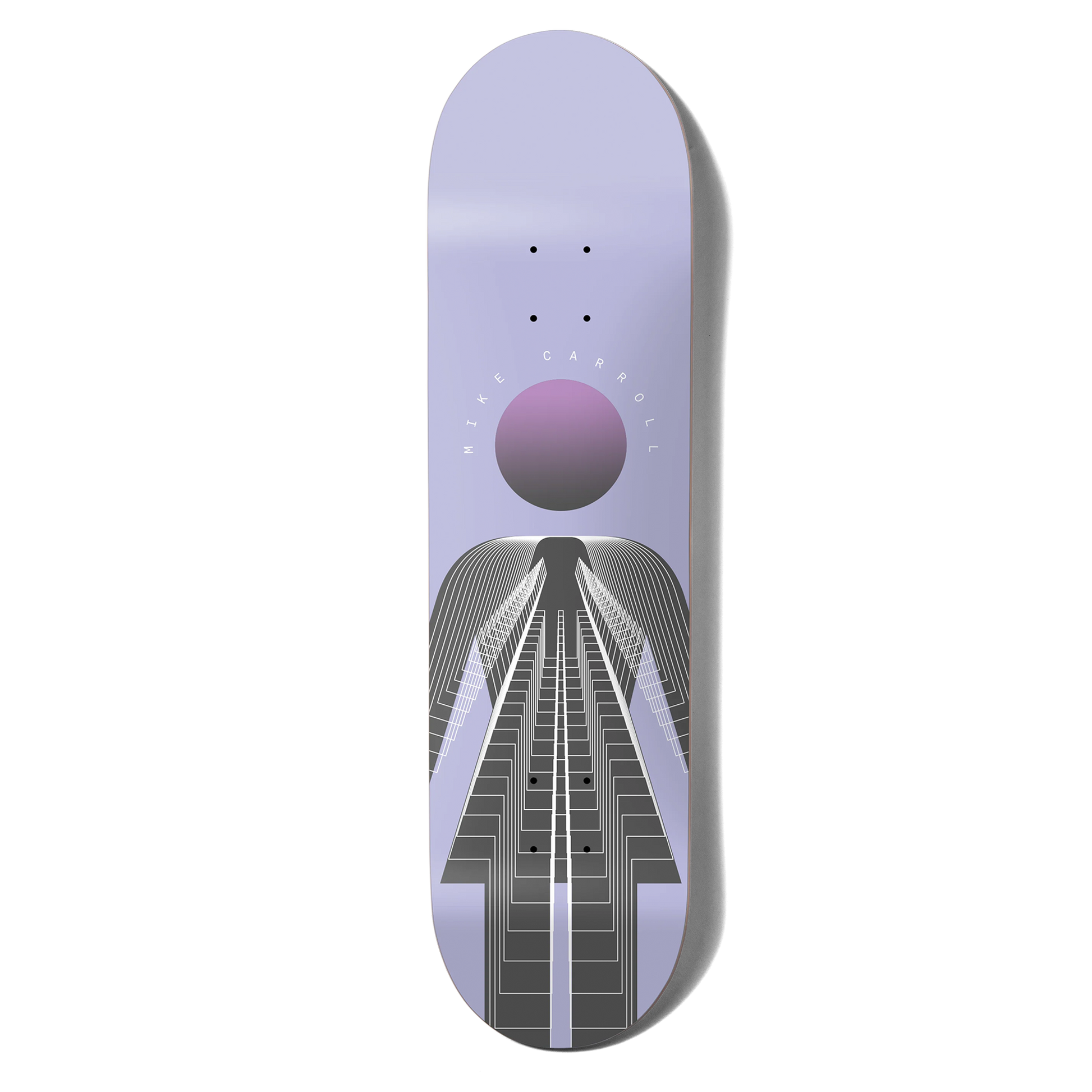 Girl Deck Introvert OG Mike Carroll 8.375" G016 is a deck from the introvert series by the brand Girl. It has a lilac base colour with the OG Girl logo and overlapping white retro lines.