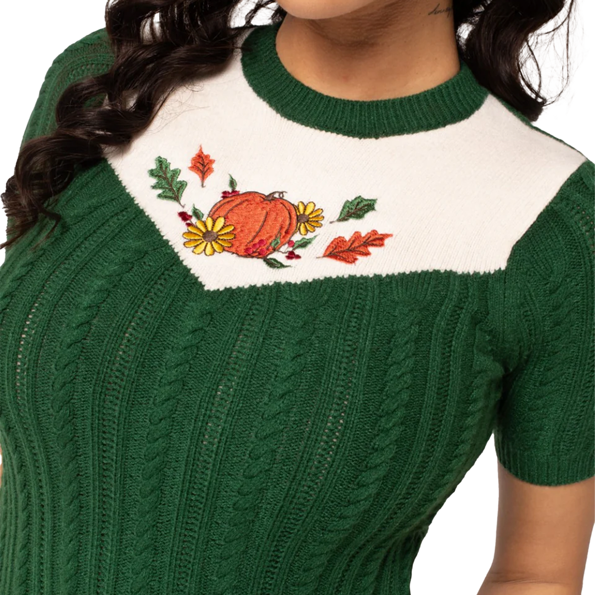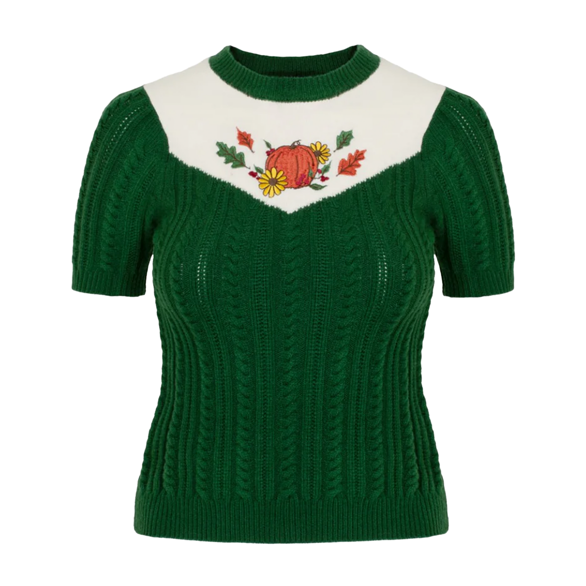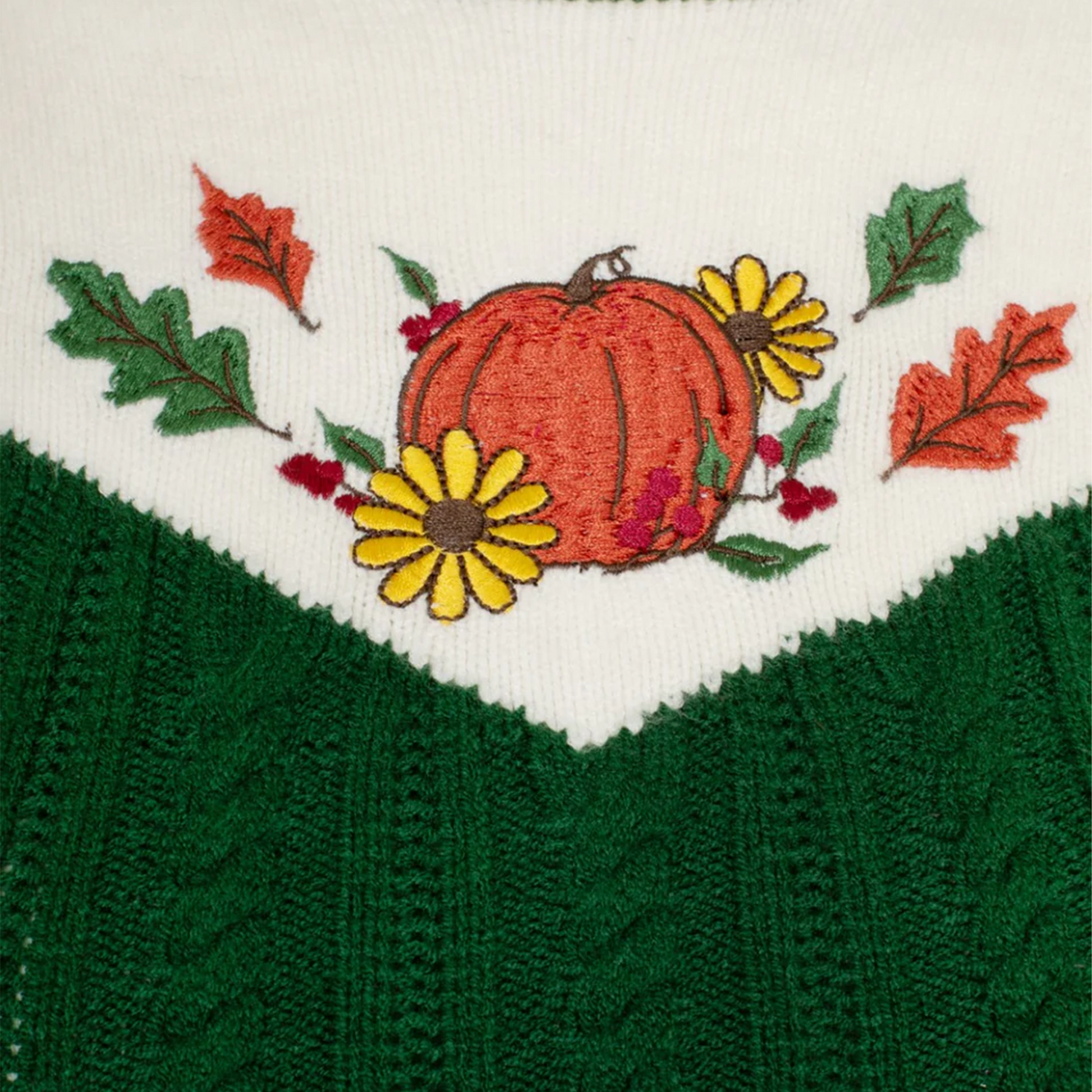 - Dark green with ivory chest panel with autumn pumpkin embroidery