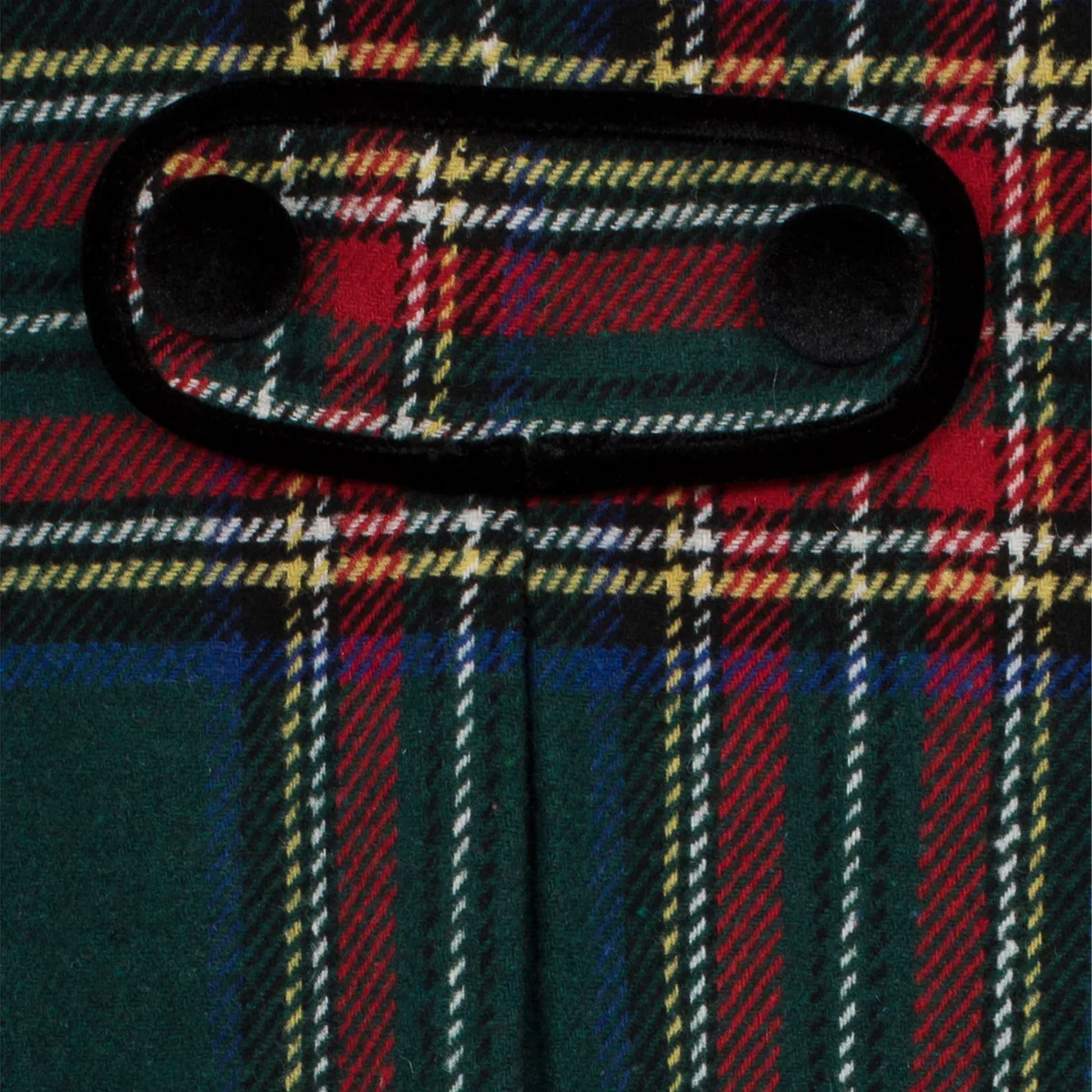 - Framed by a short curved collar with black trims and sloped shoulder seams
