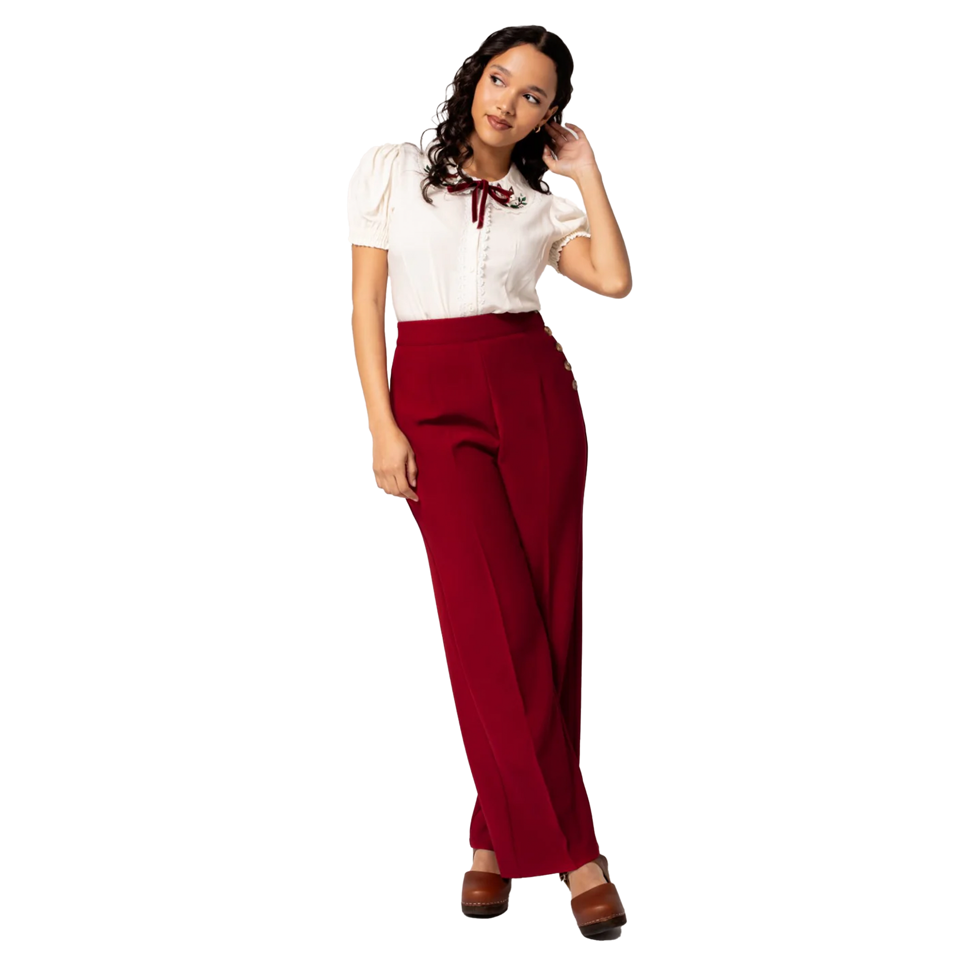 HELL BUNNY Ginger Swing Trousers - Dark Red