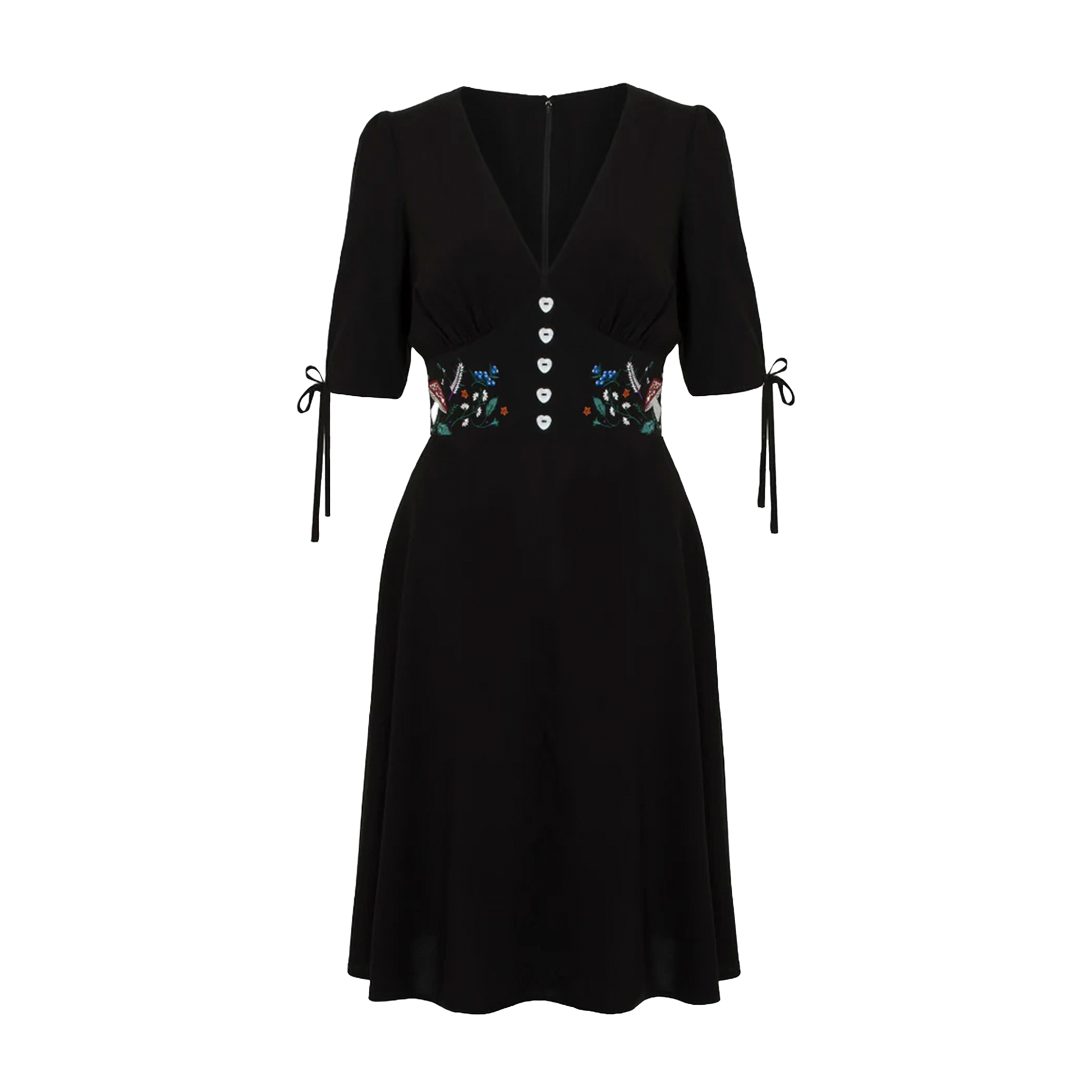 - Fit advice: Fabric has no stretch, stick to sizing advised on size guide for bust & waist, hip meaurement not needed as skirt is flared. If in between sizes choose size up