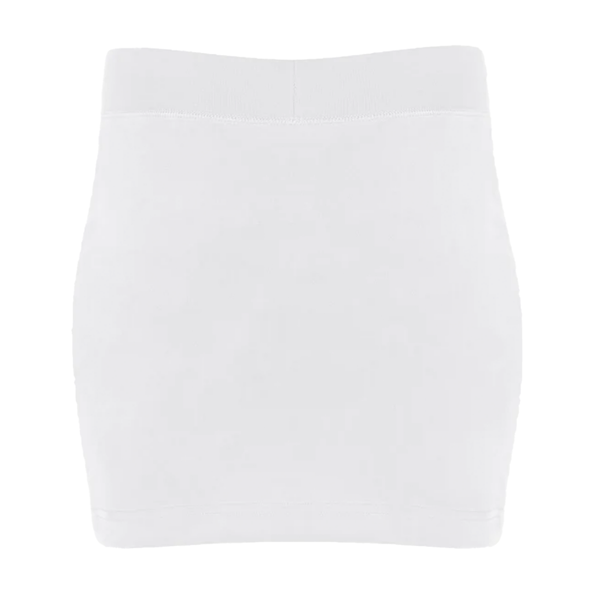 High waisted mini skirt. This skirt features a deep ribbed waistband with adjustable drawcords. Finished with a tonal embroidered 'JC' crest logo at left leg. Pair with the matching zip-through hoodie to complete the look.
